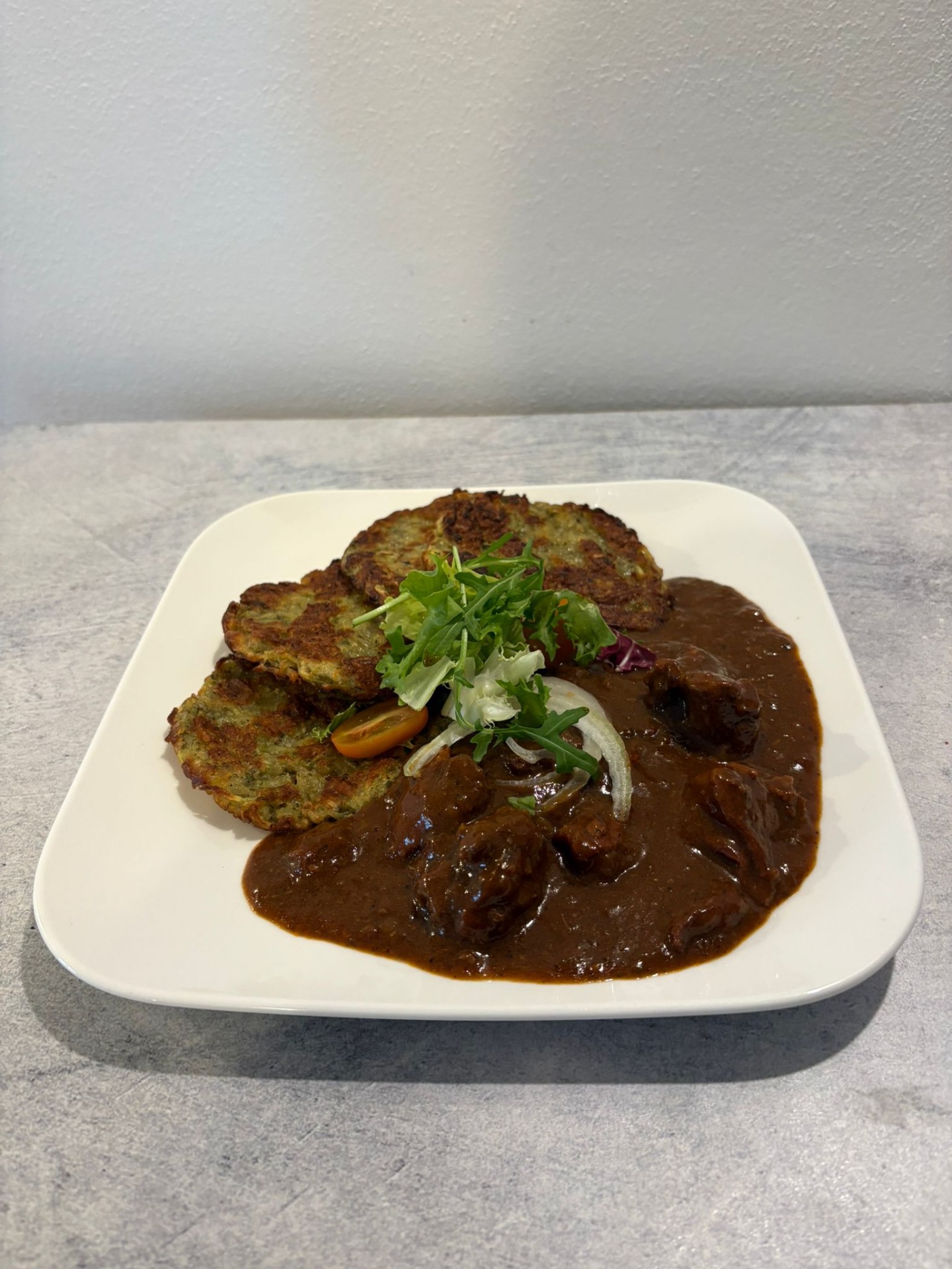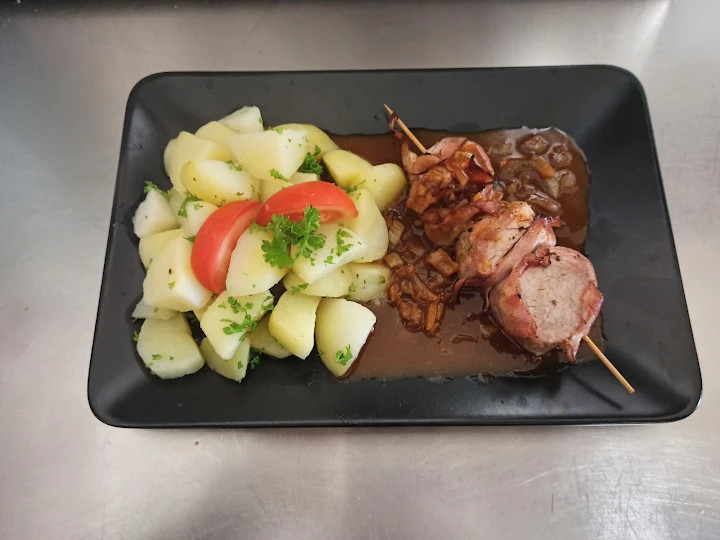 Plněný bramborák masovou směsí a sýrem (1,3,7) 165kč